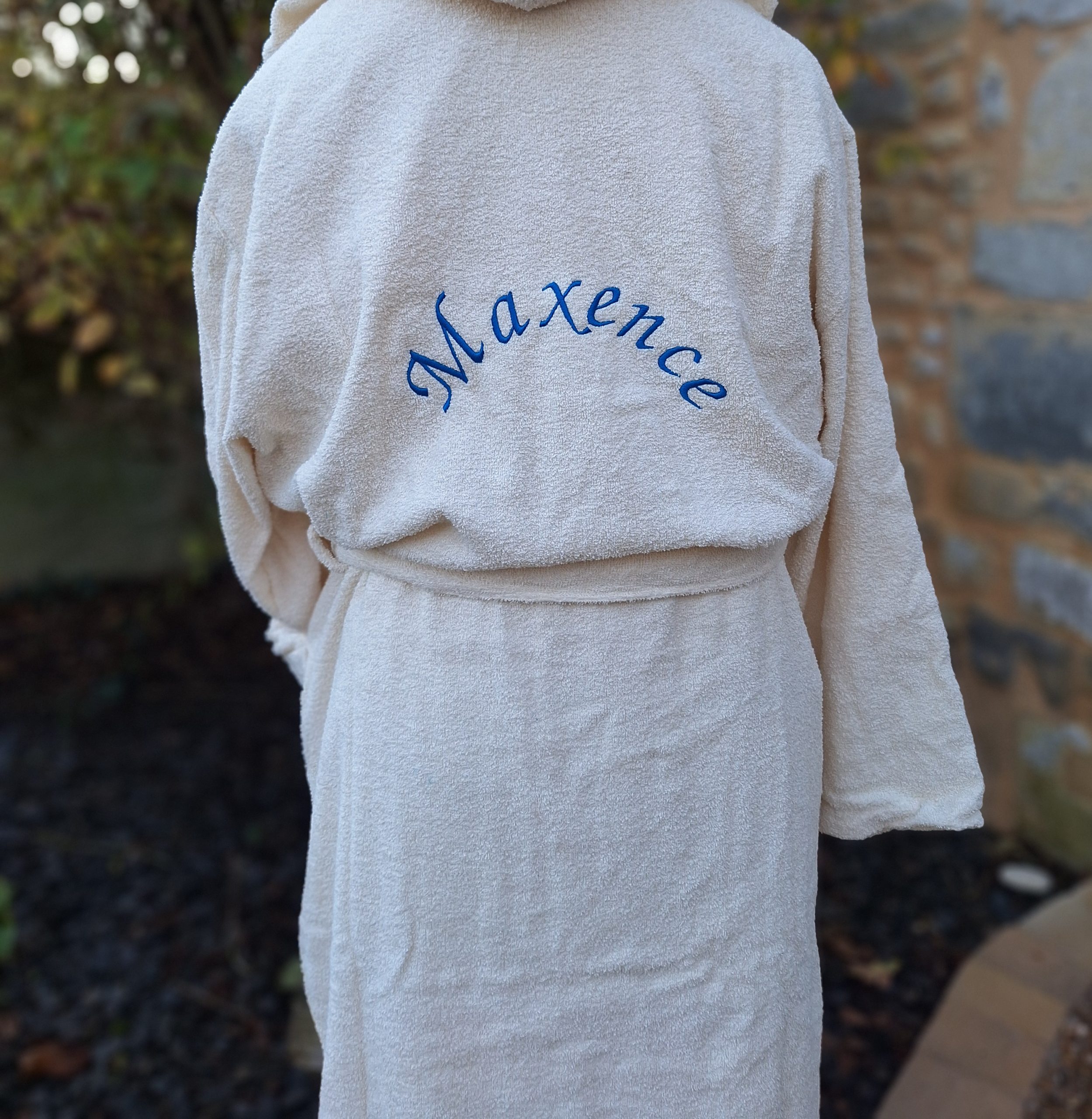 Peignoir classique en tissu éponge avec nom brodé dans le dos,