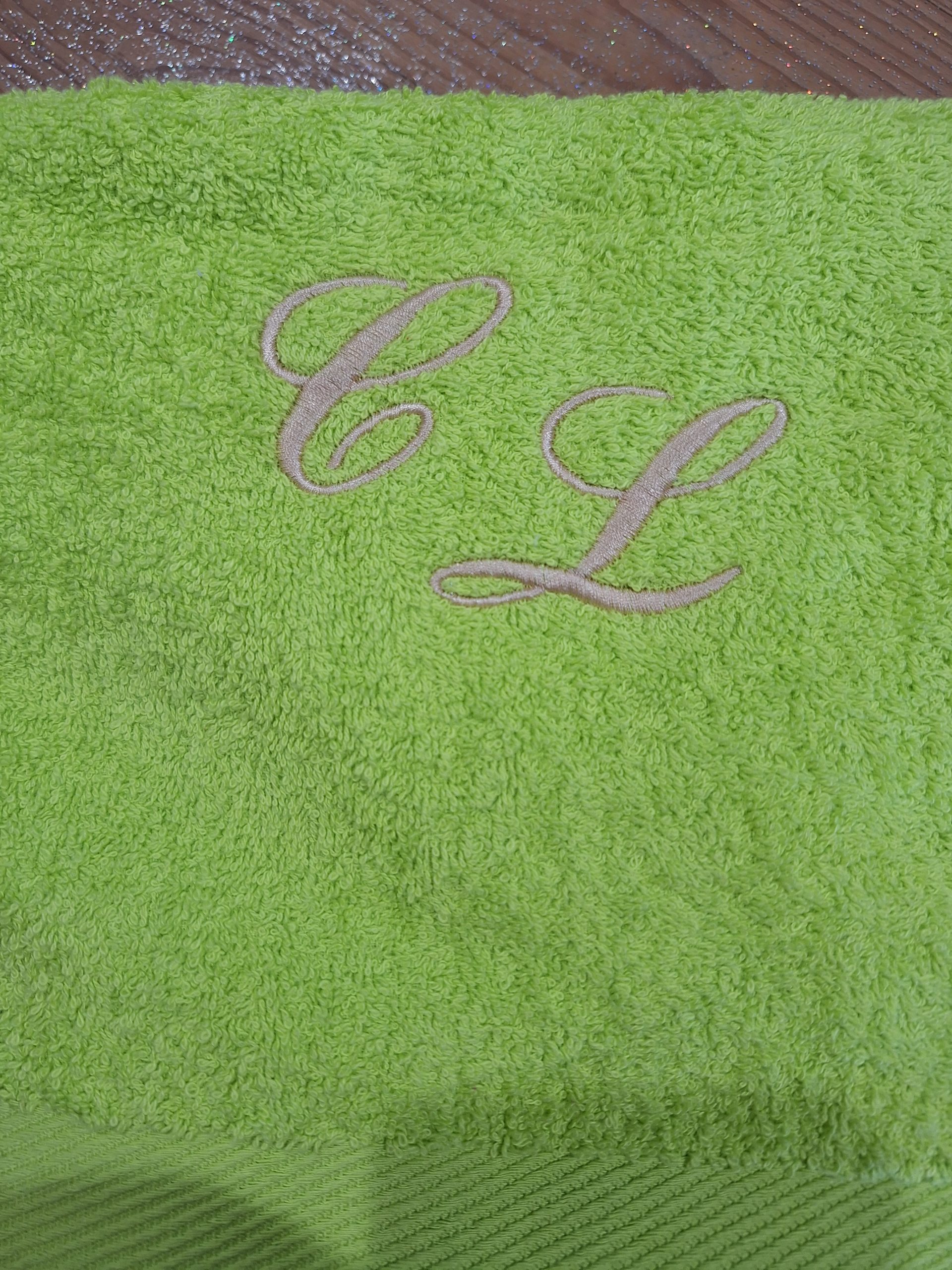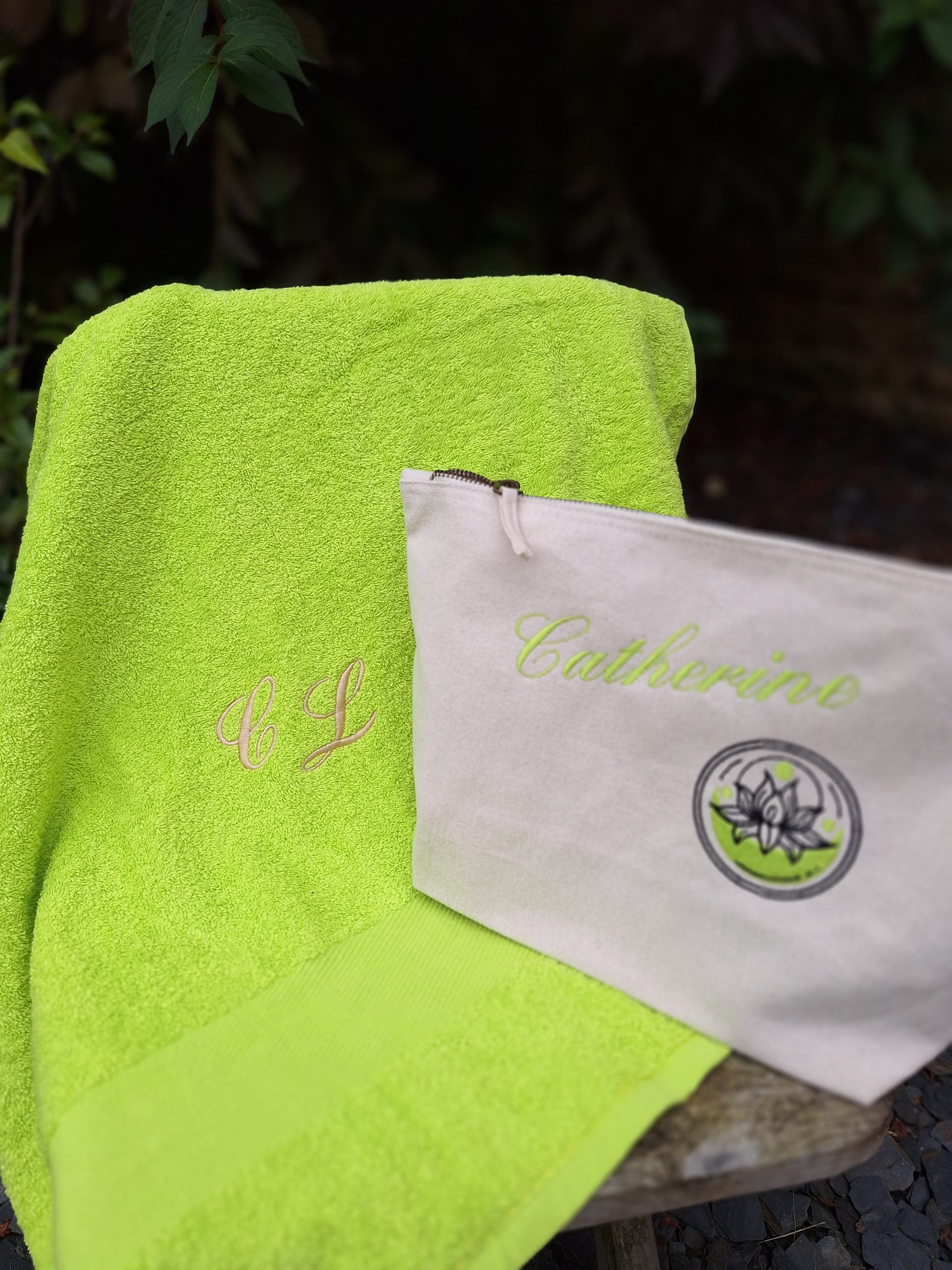 - Serviette éponge brodée d’un prénom ou initiales.