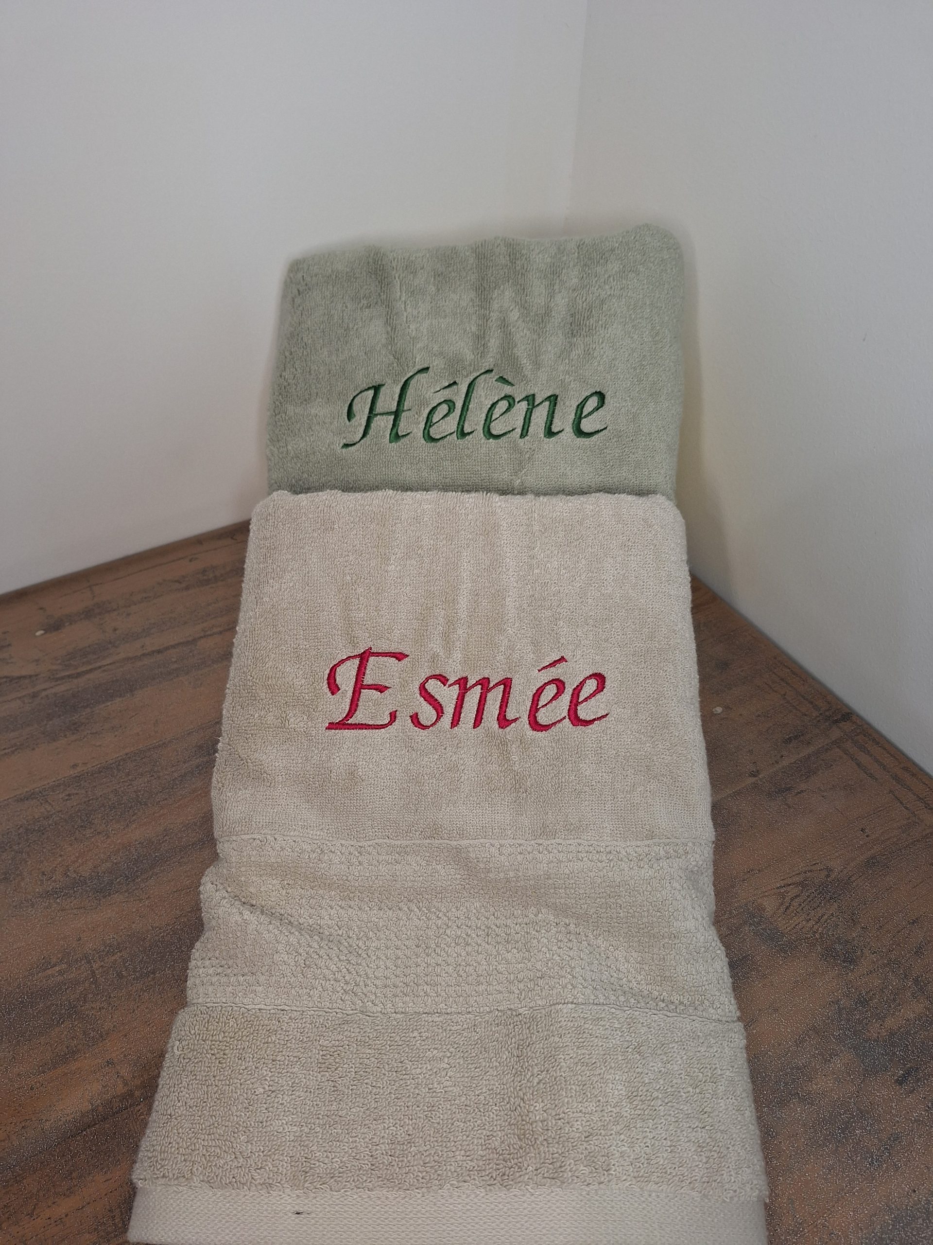 Serviette éponge brodé d’un prénom.