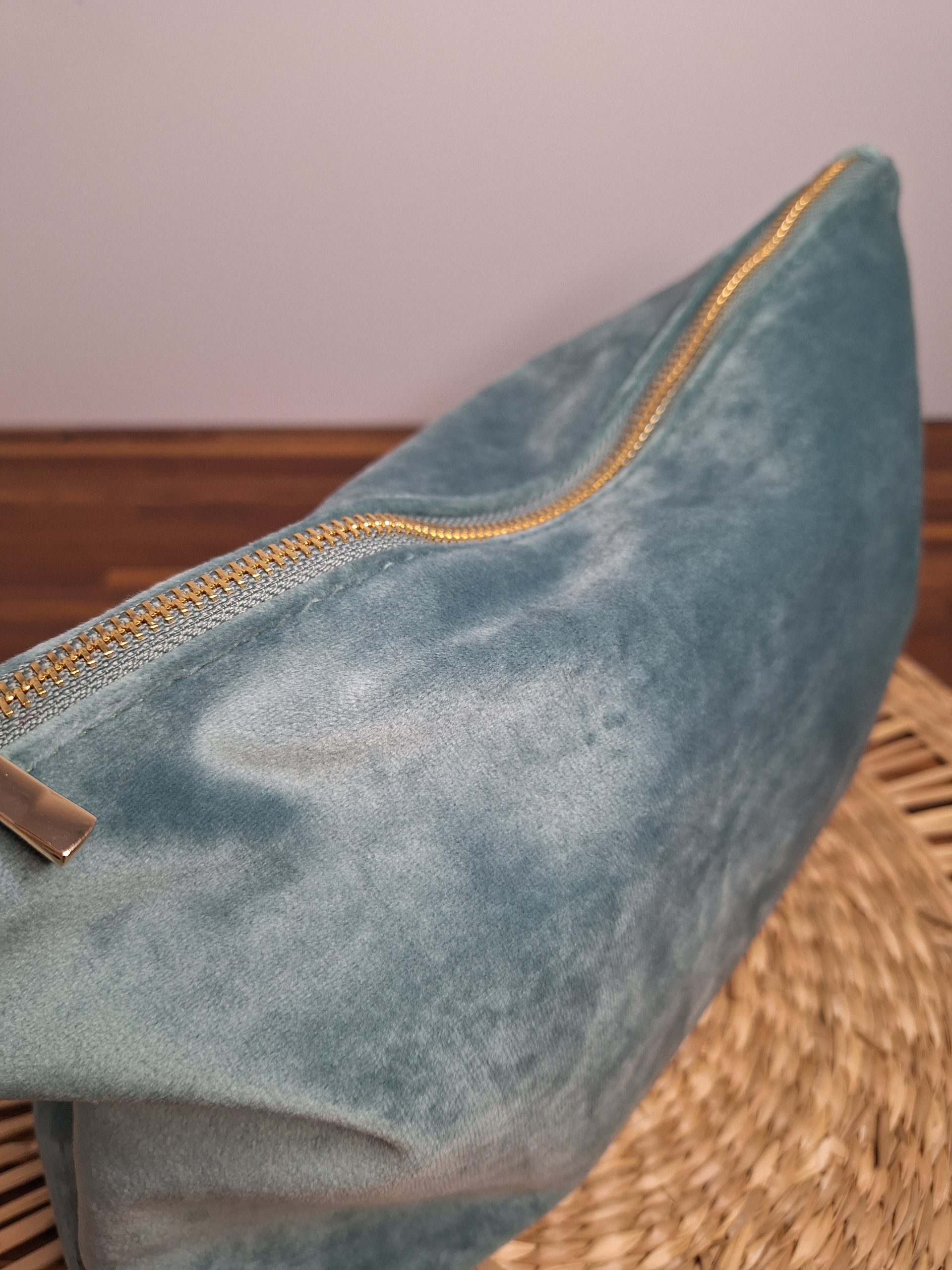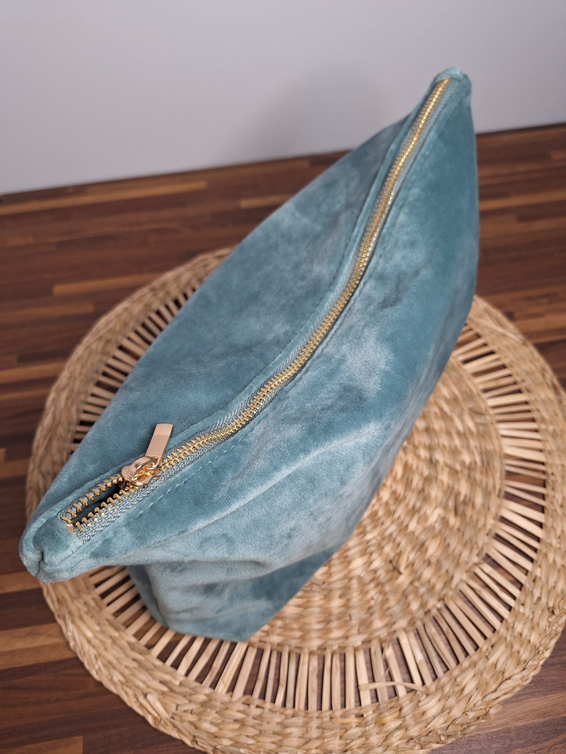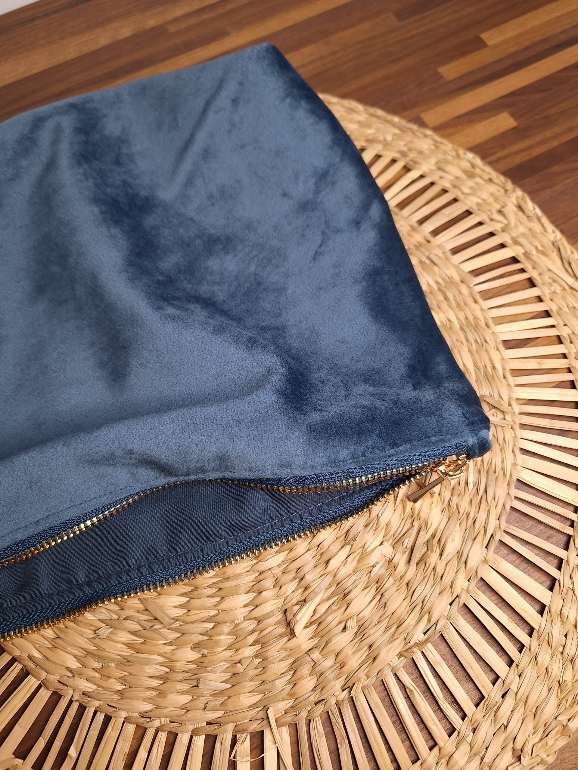 Trousse multiusage en velours, fermeture éclair en métal doré brillant