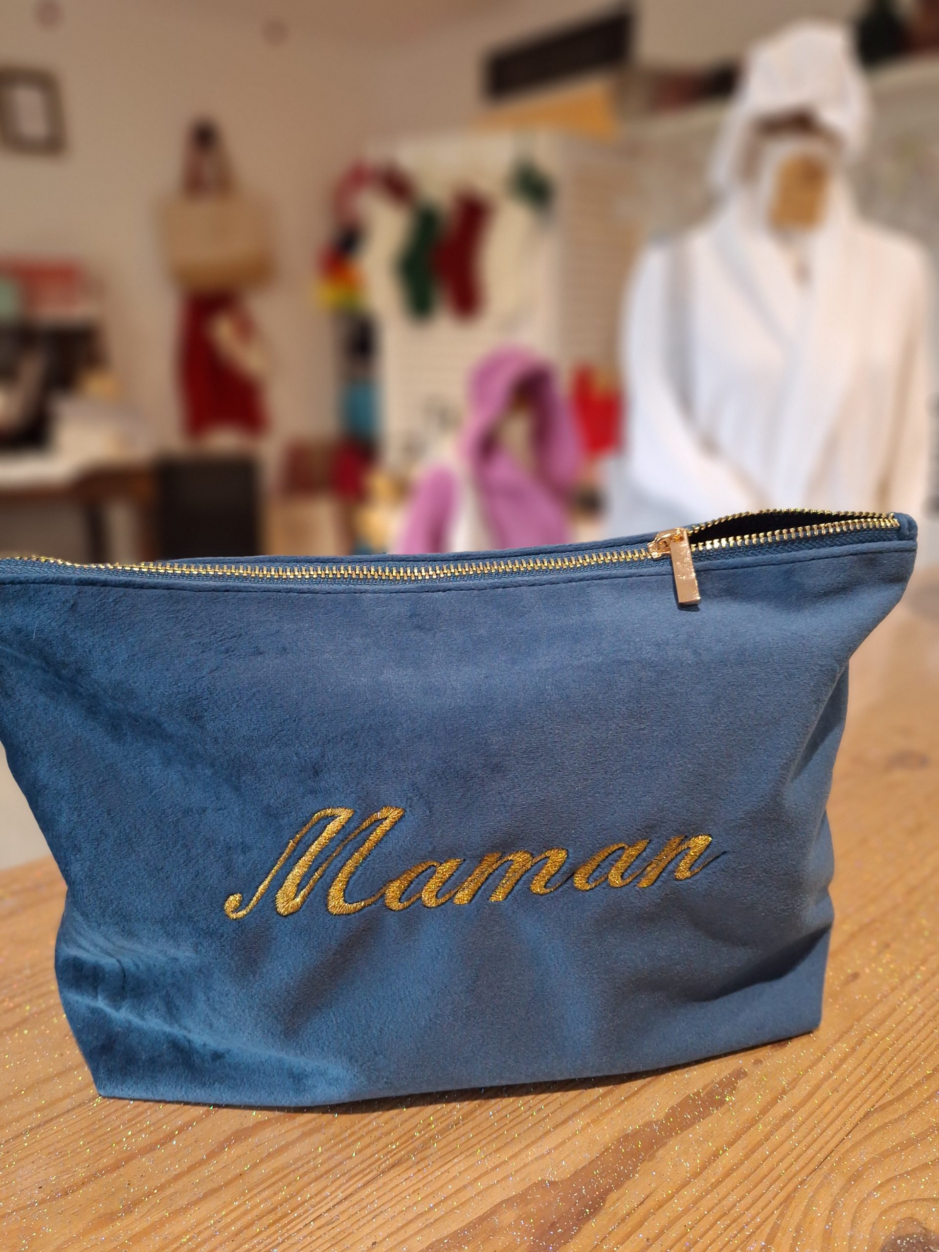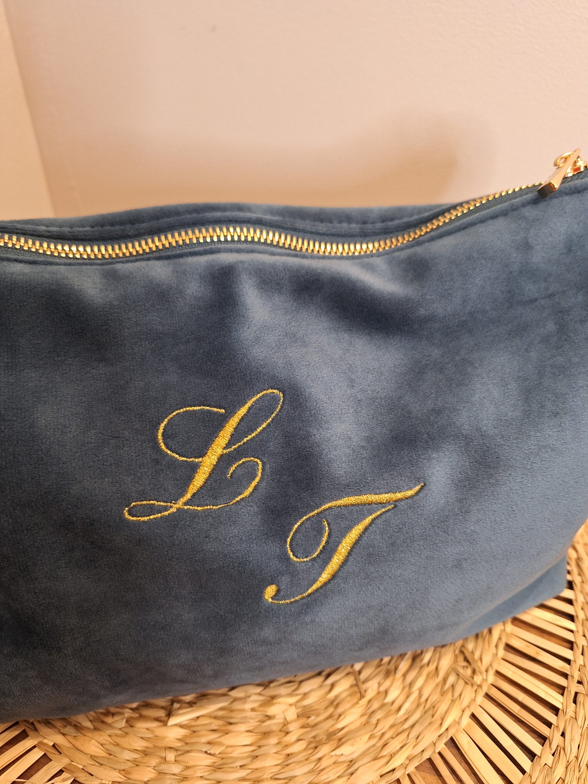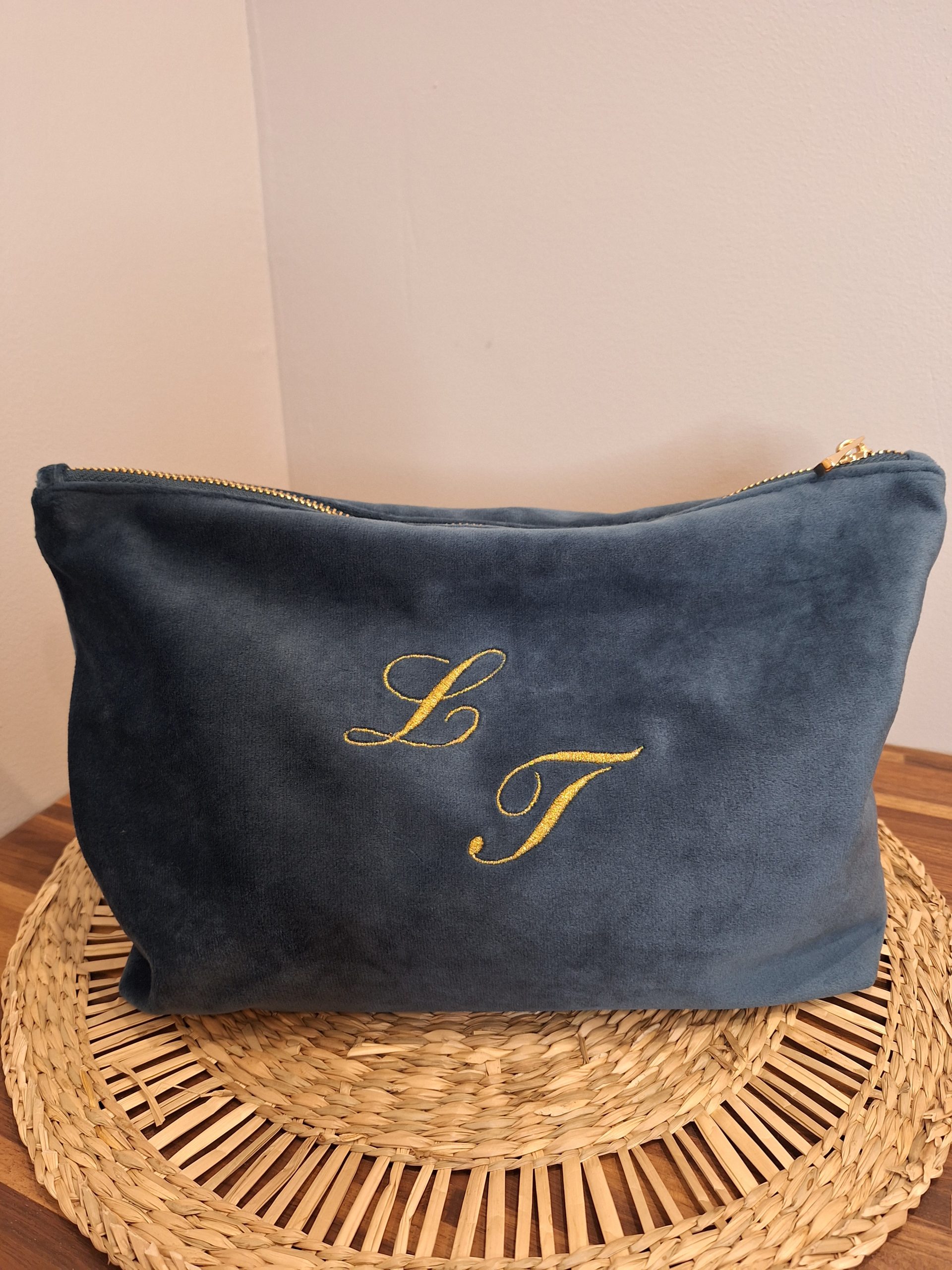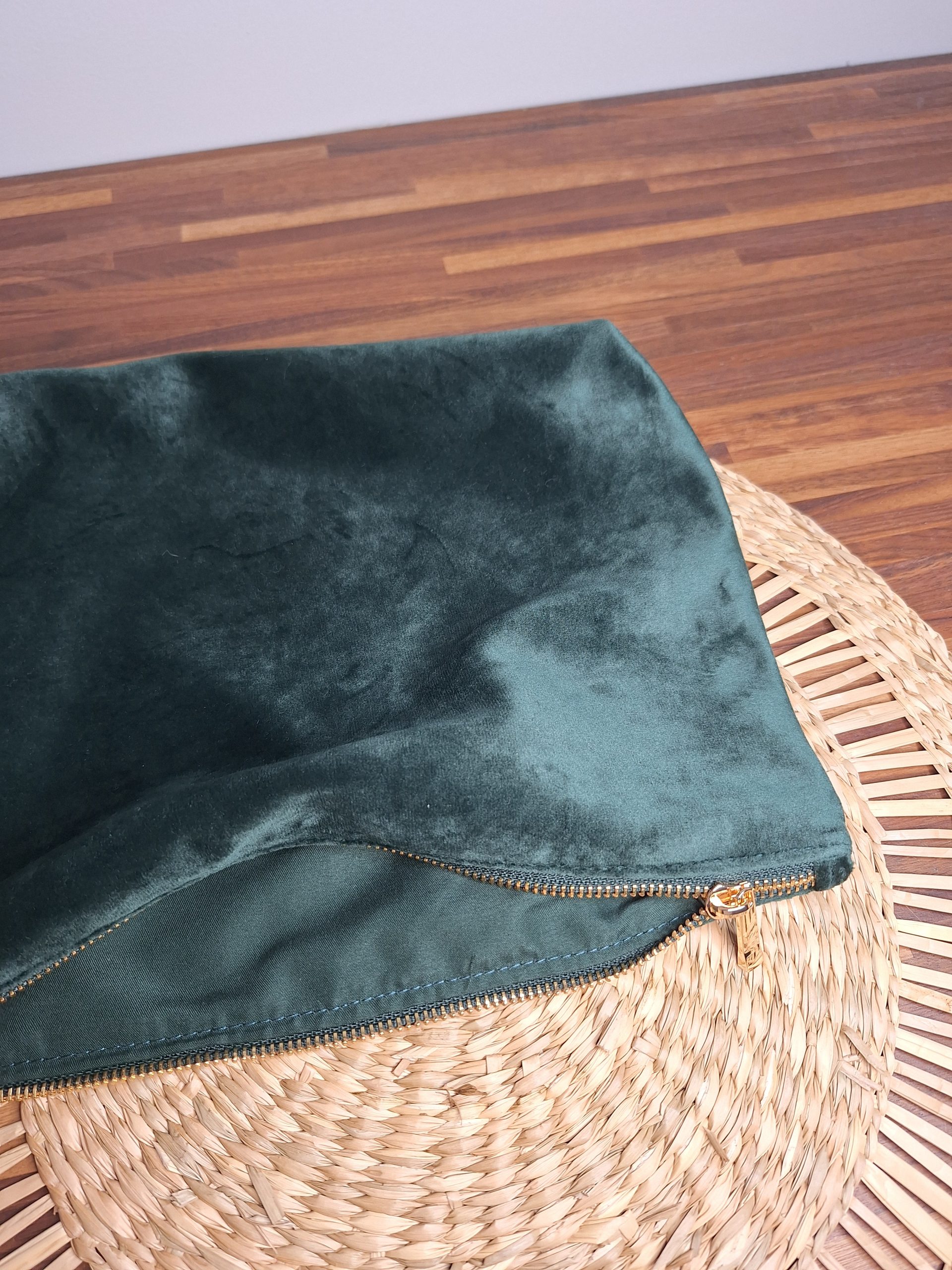 Trousse multiusage en velours, fermeture éclair en métal doré brillant